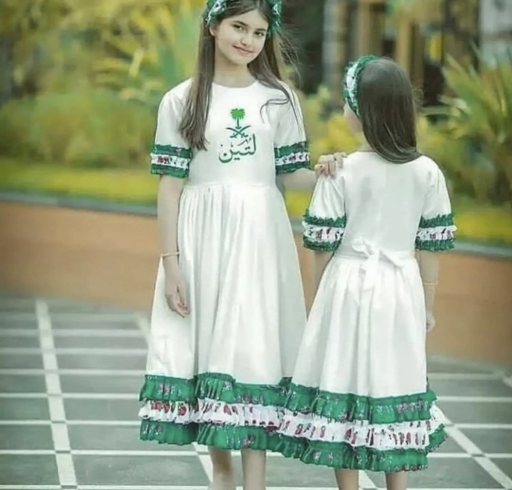 فساتين اليوم الوطني لون أبيض تصميم حسب الطلب
