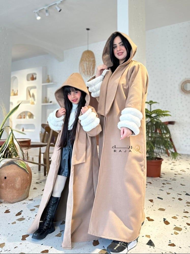 فروة شتوية مفتوحة صممت بطريقة عصرية ،منسوج من الجوخ ، اضيفت لها فرو المقلم الناعم في الاكمام ، اعطاها مظهر شتوي راقي وجميل ..ملاحظة :مدة التنفيذ ( من 2-7 ) أيام عمل .المقاسات مثل مقاس العباية العاديه