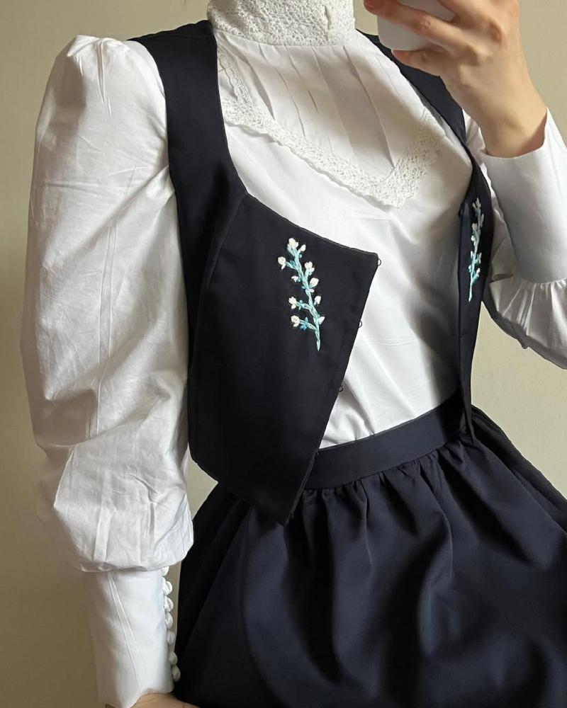 جديد طقم مريول متوسط اللون أسود يتكون من ثلاث قطع